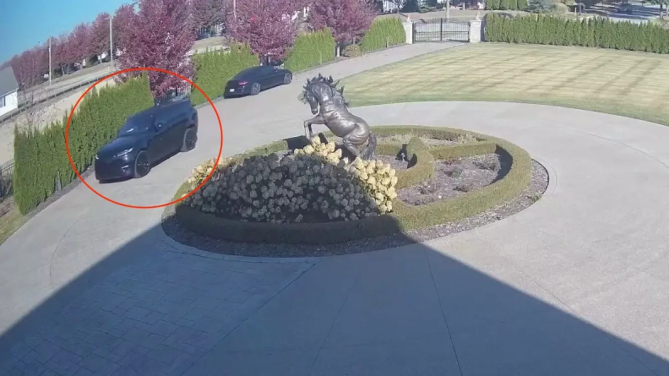 Police released surveillance video of a gunman who waited to ambush a businessman outside his gated mansion. (Macomb County Sheriff’s Office)