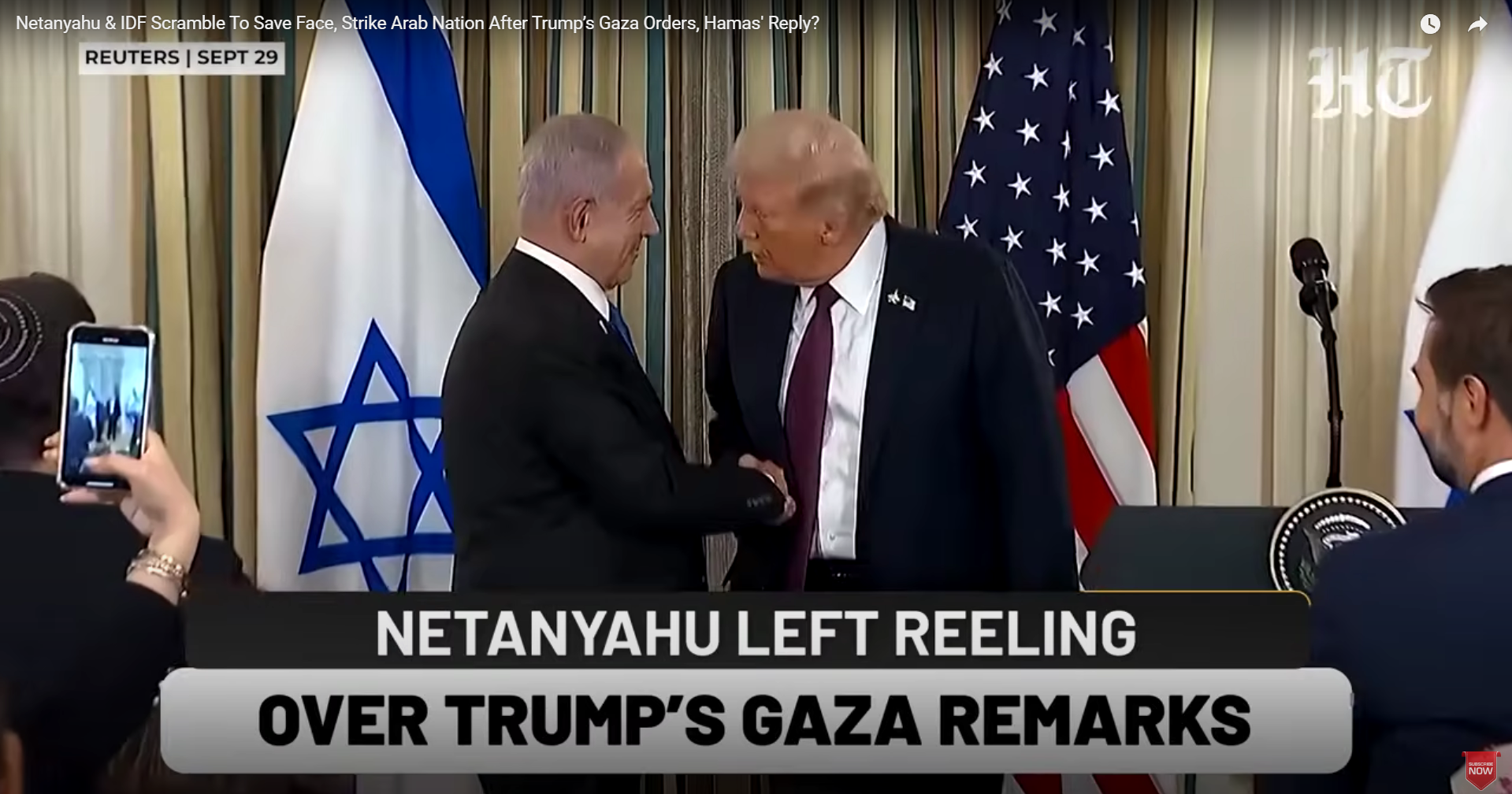 Netanyahu & IDF Scramble To Save Face, Strike Arab Nation After Trump’s Gaza Orders, Hamas’ Reply? October 4, 2025October 4, 2025 - by blackcyber369 - Leave a Comment Netanyahu & IDF Scramble To Save Face, Strike Arab Nation After Trump’s Gaza Orders, Hamas’ Reply?