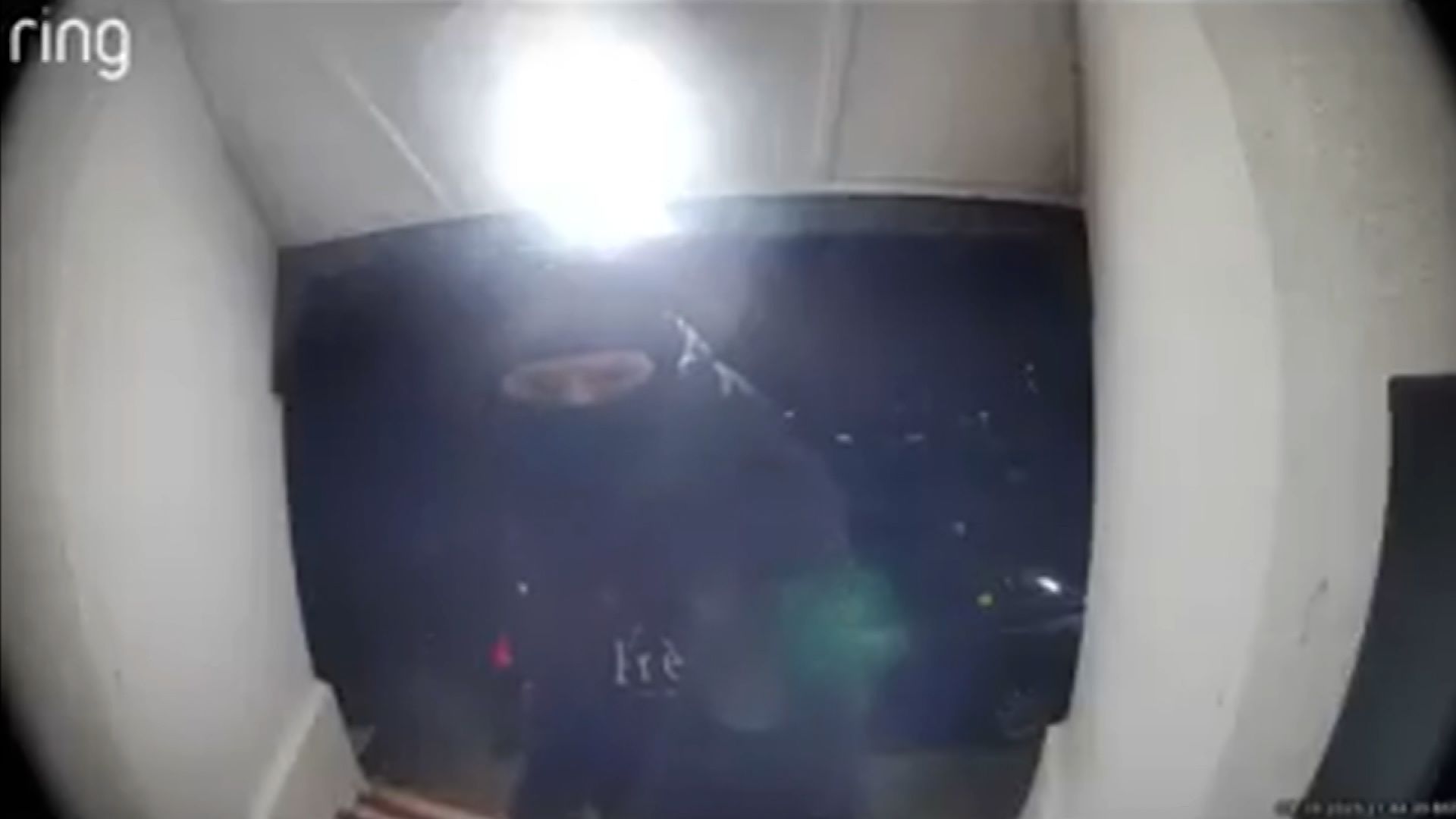 Footage from the mosque’s door camera shows two people in balaclavas arriving at the entrance a short time later, pulling the door handle and pushing the door several times, the manager said.